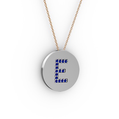 Lab safir 18 ayar beyaz altın kolye (40 cm rose altın rolo zincir)