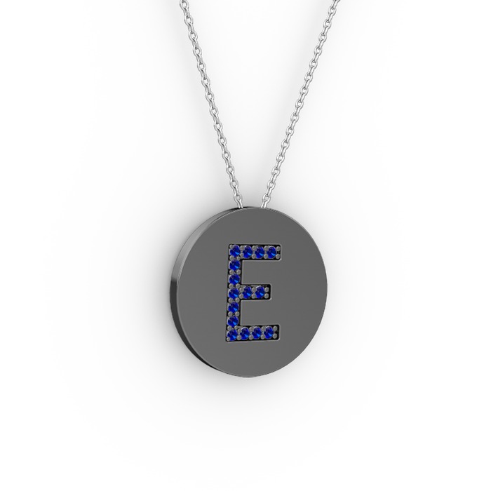 Lab safir 925 ayar siyah rodyum kaplama gümüş kolye (40 cm beyaz altın rolo zincir)