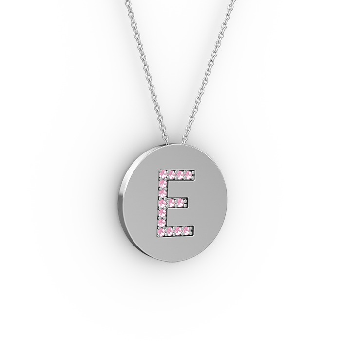 Pembe kuvars 8 ayar beyaz altın kolye (40 cm beyaz altın rolo zincir)