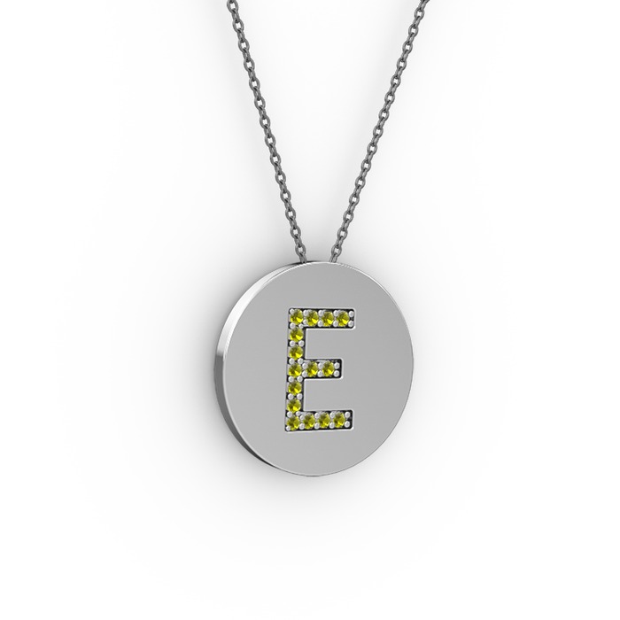 Peridot 14 ayar beyaz altın kolye (40 cm gümüş rolo zincir)