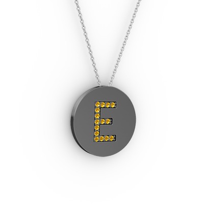 Sitrin 925 ayar siyah rodyum kaplama gümüş kolye (40 cm beyaz altın rolo zincir)