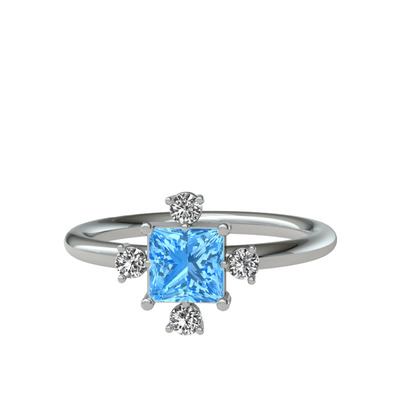 Akuamarin ve beyaz zirkon 14 ayar beyaz altın yüzük