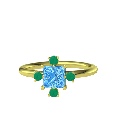 Akuamarin ve kök zümrüt 925 ayar altın kaplama gümüş yüzük
