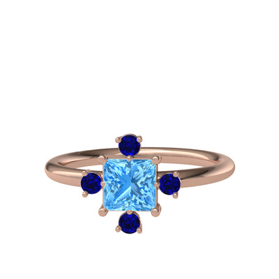 Akuamarin ve lab safir 18 ayar rose altın yüzük