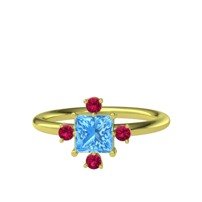 Akuamarin ve rodolit garnet 925 ayar altın kaplama gümüş yüzük