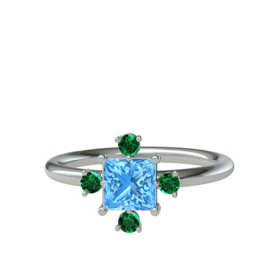Akuamarin ve yeşil kuvars 18 ayar beyaz altın yüzük
