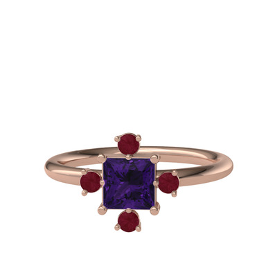Ametist ve kök yakut 18 ayar rose altın yüzük