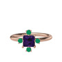 Ametist ve kök zümrüt 925 ayar rose altın kaplama gümüş yüzük