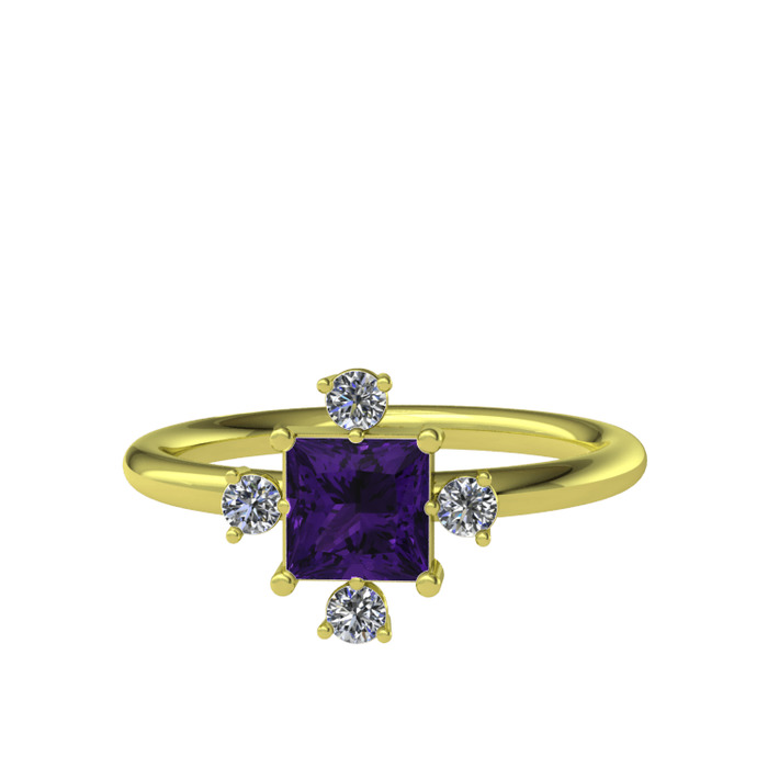 Ametist ve pırlanta 18 ayar altın yüzük (0.144 karat)