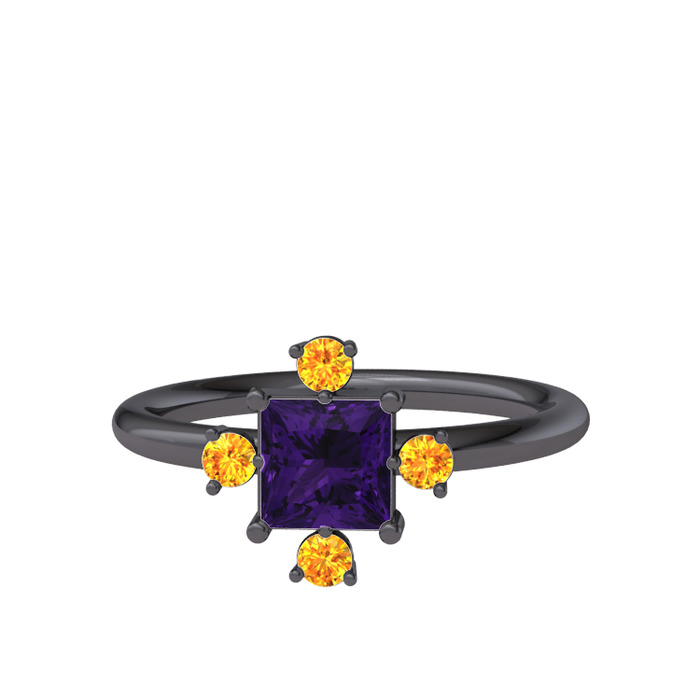 Ametist ve sitrin 925 ayar siyah rodyum kaplama gümüş yüzük