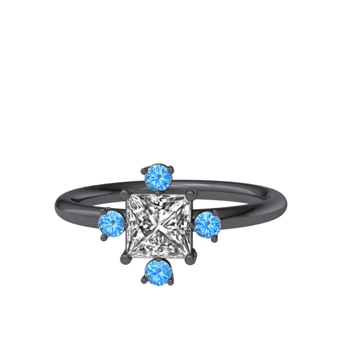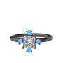 Beyaz zirkon ve akuamarin 925 ayar siyah rodyum kaplama gümüş yüzük