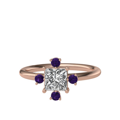 Beyaz zirkon ve ametist 925 ayar rose altın kaplama gümüş yüzük