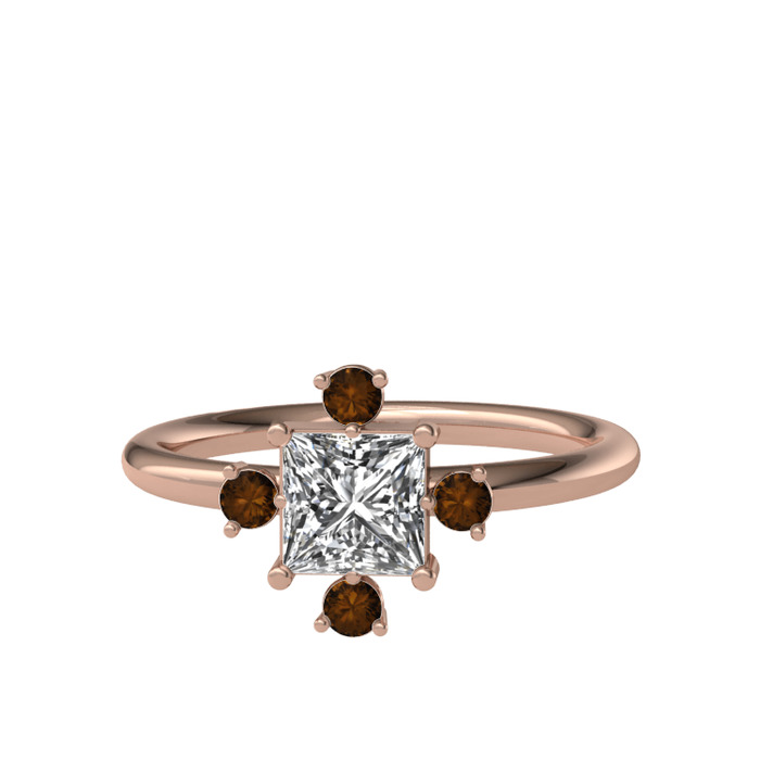 Beyaz zirkon ve dumanlı kuvars 14 ayar rose altın yüzük