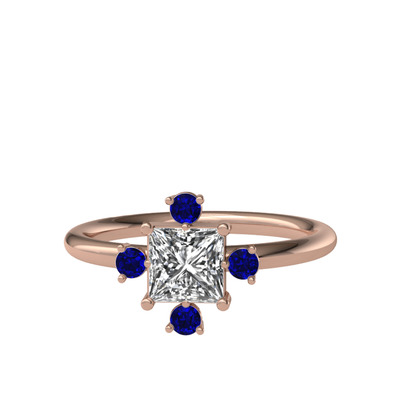 Beyaz zirkon ve lab safir 925 ayar rose altın kaplama gümüş yüzük