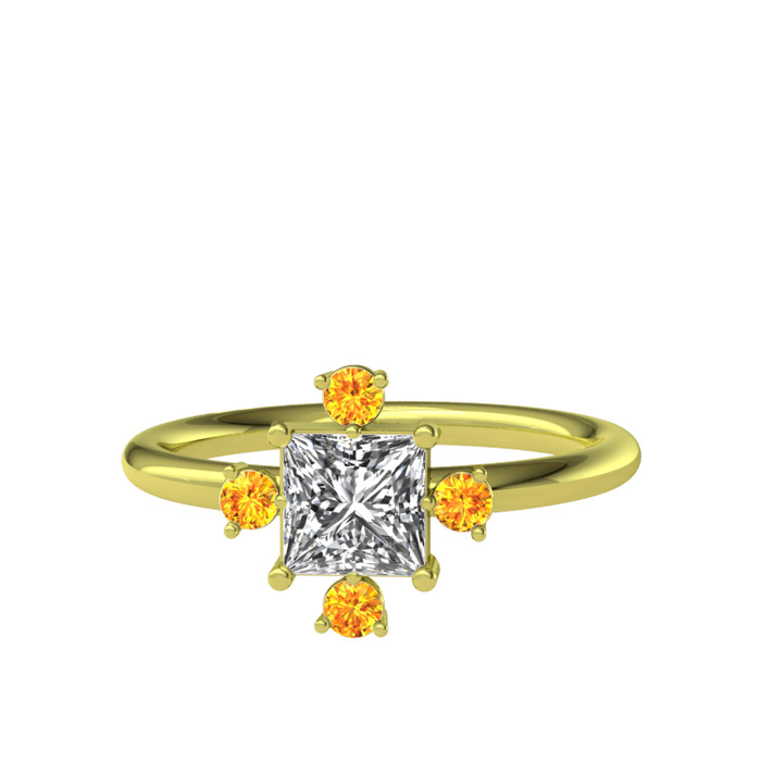 Beyaz zirkon ve sitrin 18 ayar altın yüzük