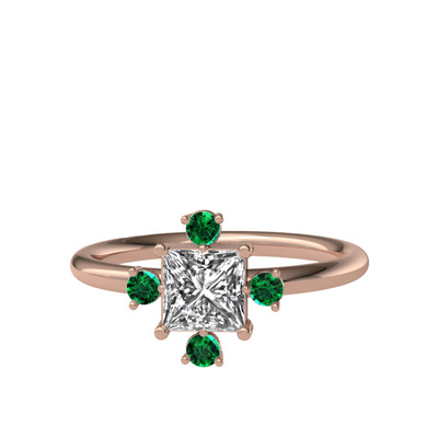 Beyaz zirkon ve yeşil kuvars 18 ayar rose altın yüzük