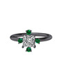 Beyaz zirkon ve yeşil kuvars 925 ayar siyah rodyum kaplama gümüş yüzük