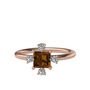 Dumanlı kuvars ve beyaz zirkon 8 ayar rose altın yüzük