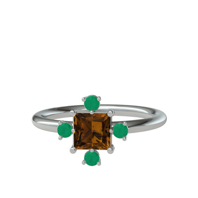 Dumanlı kuvars ve kök zümrüt 18 ayar beyaz altın yüzük