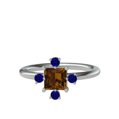 Dumanlı kuvars ve lab safir 18 ayar beyaz altın yüzük