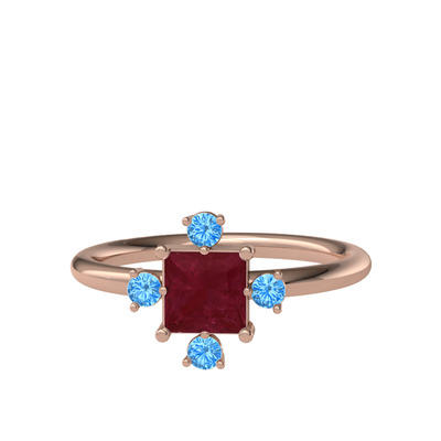 Kök yakut ve akuamarin 14 ayar rose altın yüzük
