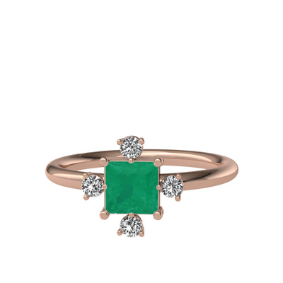 Kök zümrüt ve beyaz zirkon 8 ayar rose altın yüzük