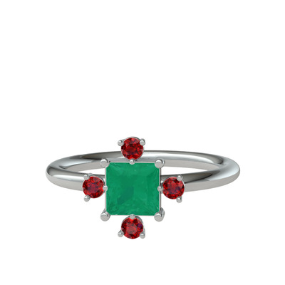 Kök zümrüt ve garnet 14 ayar beyaz altın yüzük
