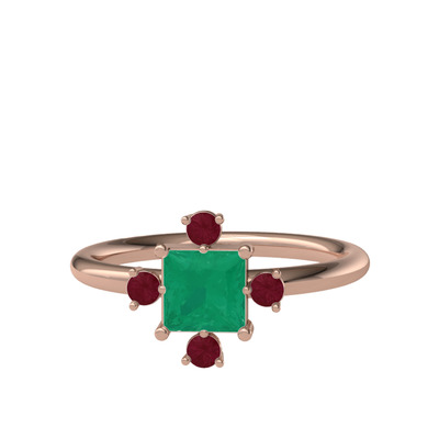 Kök zümrüt ve kök yakut 14 ayar rose altın yüzük