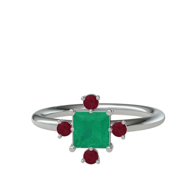 Kök zümrüt ve kök yakut 18 ayar beyaz altın yüzük
