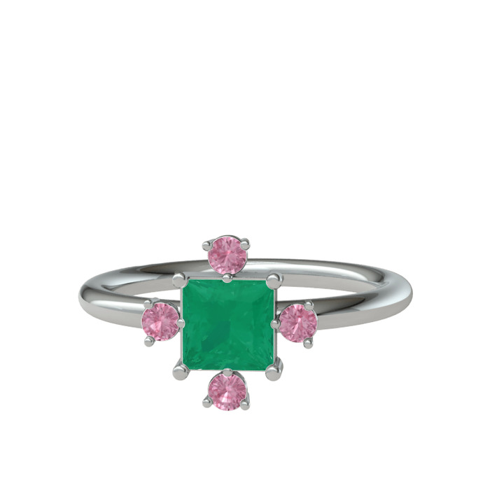 Kök zümrüt ve pembe kuvars 14 ayar beyaz altın yüzük