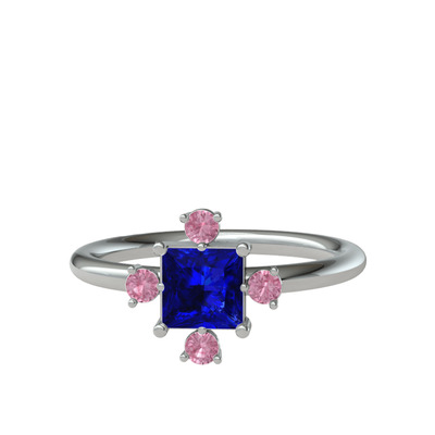 Lab safir ve pembe kuvars 14 ayar beyaz altın yüzük