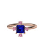 Lab safir ve pembe kuvars 14 ayar rose altın yüzük