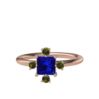Lab safir ve peridot 925 ayar rose altın kaplama gümüş yüzük