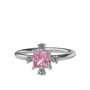 Pembe kuvars ve pırlanta 14 ayar beyaz altın yüzük (0.144 karat)