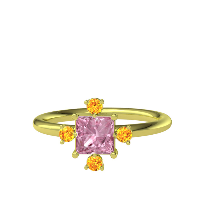Pembe kuvars ve sitrin 925 ayar altın kaplama gümüş yüzük