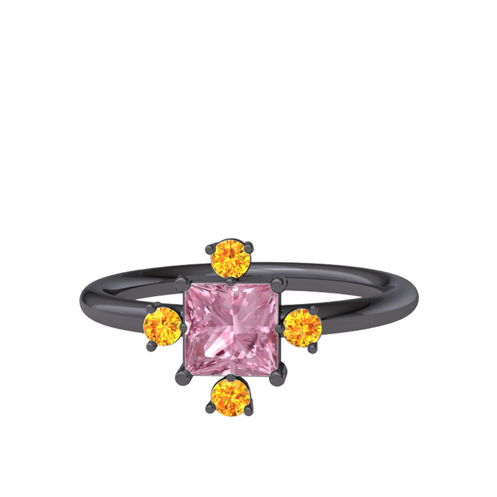 Pembe kuvars ve sitrin 925 ayar siyah rodyum kaplama gümüş yüzük