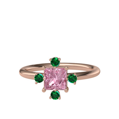 Pembe kuvars ve yeşil kuvars 18 ayar rose altın yüzük