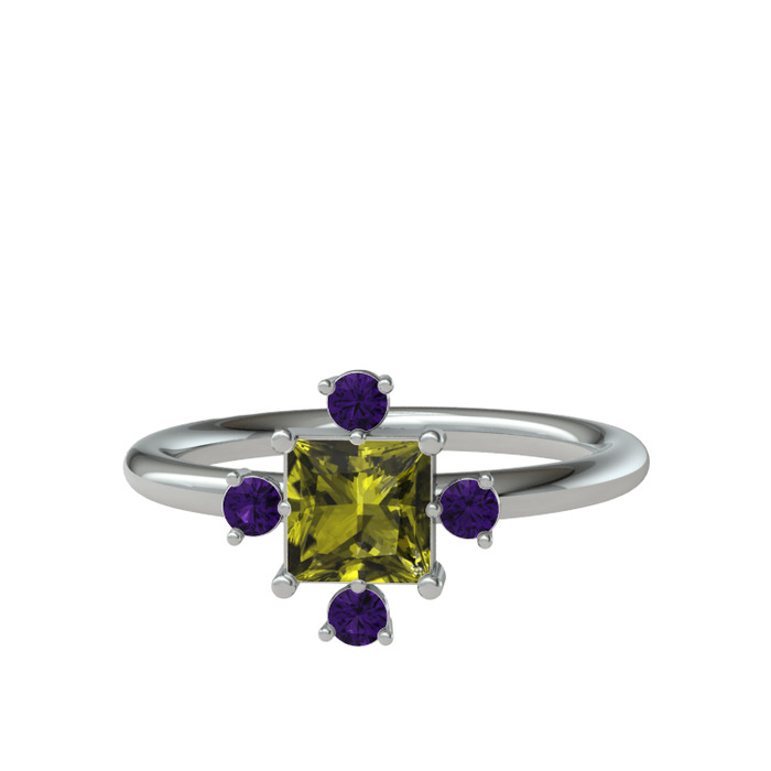 Peridot ve ametist 8 ayar beyaz altın yüzük
