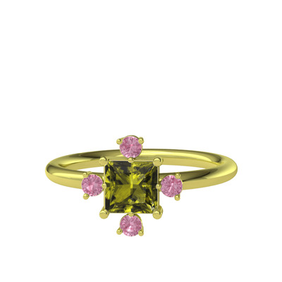 Peridot ve pembe kuvars 14 ayar altın yüzük