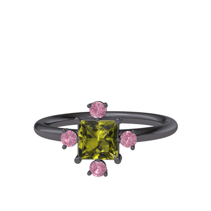 Peridot ve pembe kuvars 925 ayar siyah rodyum kaplama gümüş yüzük