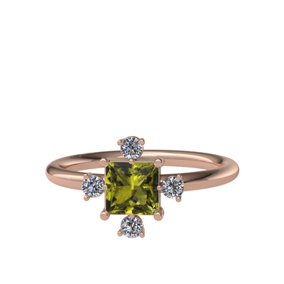 Peridot ve pırlanta 8 ayar rose altın yüzük (0.144 karat)