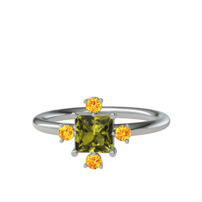 Peridot ve sitrin 18 ayar beyaz altın yüzük