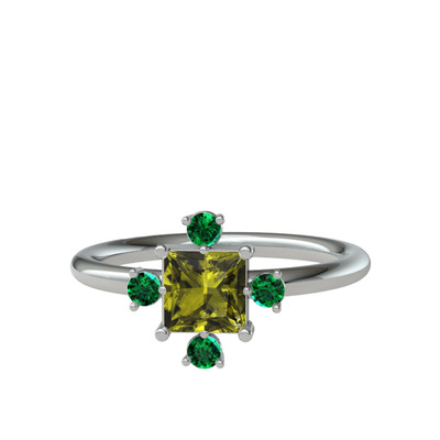 Peridot ve yeşil kuvars 14 ayar beyaz altın yüzük