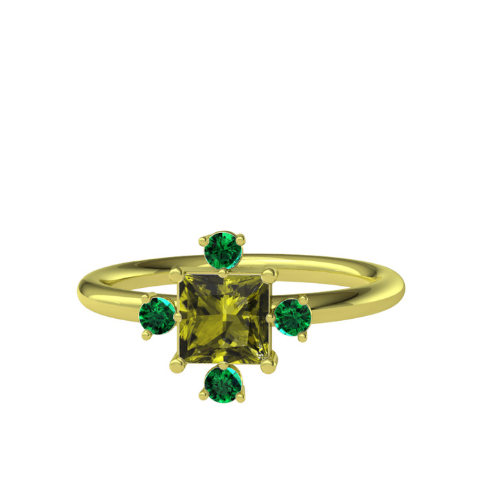 Peridot ve yeşil kuvars 8 ayar altın yüzük