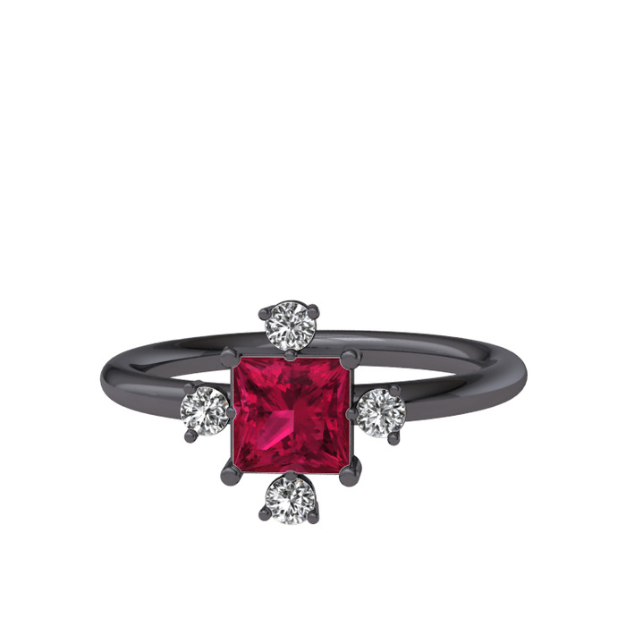 Rodolit garnet ve beyaz zirkon 925 ayar siyah rodyum kaplama gümüş yüzük