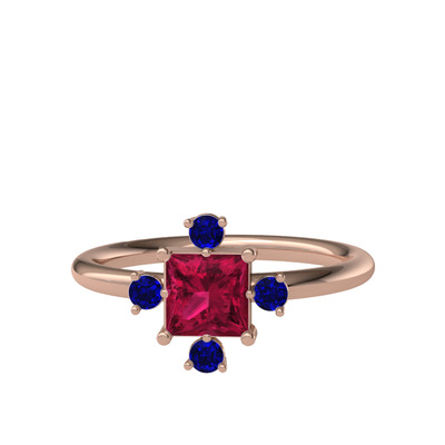 Rodolit garnet ve lab safir 8 ayar rose altın yüzük