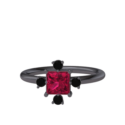 Rodolit garnet ve siyah zirkon 925 ayar siyah rodyum kaplama gümüş yüzük