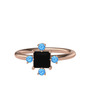 Siyah zirkon ve akuamarin 925 ayar rose altın kaplama gümüş yüzük