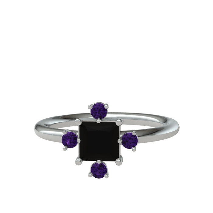 Siyah zirkon ve ametist 14 ayar beyaz altın yüzük