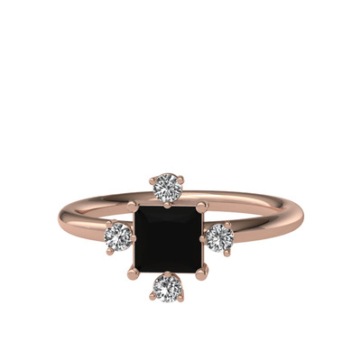 Siyah zirkon ve beyaz zirkon 18 ayar rose altın yüzük